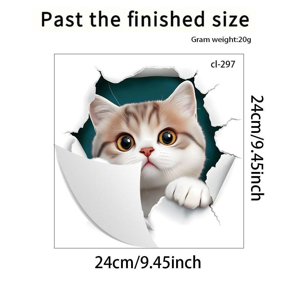 3D Cute Cartoon Cat Breaking Through Wall Toilet Sticker Self-Adhesive Waterproof Removable Bathroom Home Decor Art