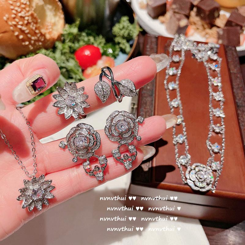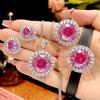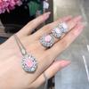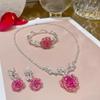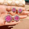 Sparkling Rose Water Drop Gemstone Necklace, Designer Spinel Zircon Rose Ring Bracelet Plated 18K Gold