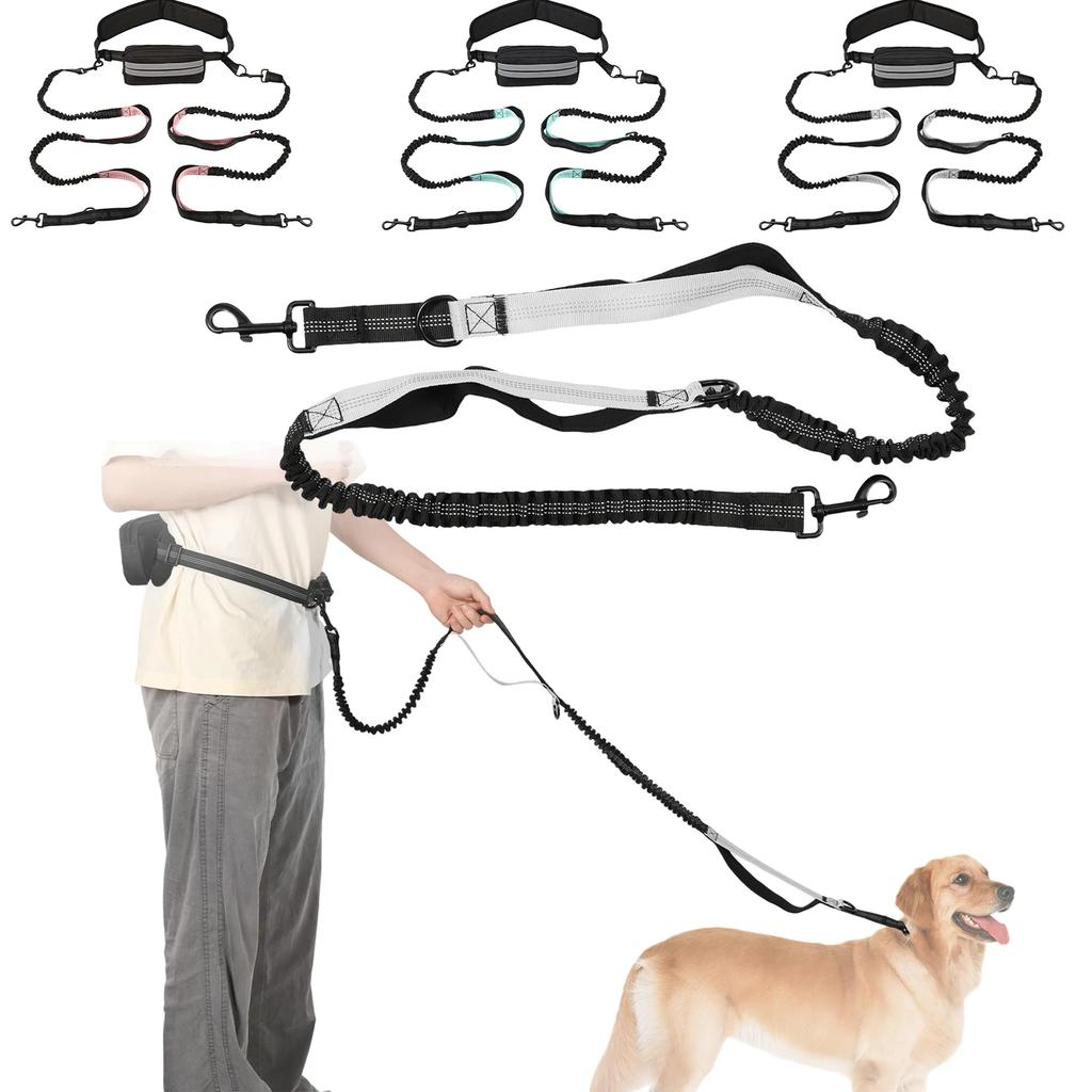 Hands Free Dog Leash for Running Walking Reflective Leash with Waist Bag Retractable Traction Rope for Running Walking Jogging