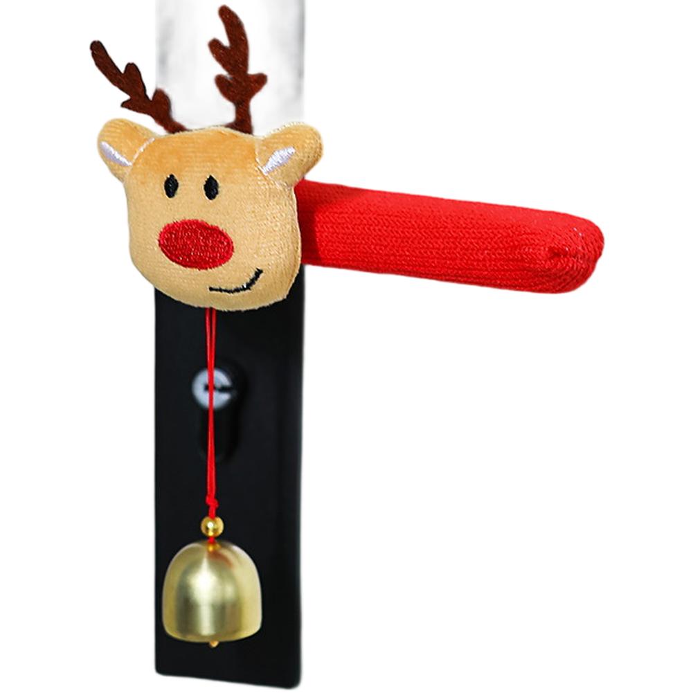 Santa Claus Reindeer Christmas Door Knob Cover Soft Cloth with Jingle Bell for Festive Holiday Room Decoration
