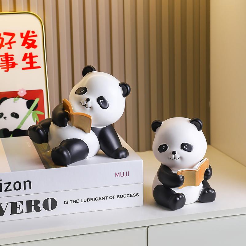 2Pcs: Library Panda Decorative Bookholder Decorative Desktop Cute Panda Bookholder School Office Resin Bookholder