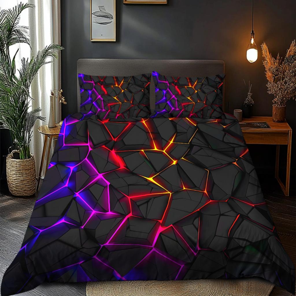 Digital Printing Soft with Soft Fabric Duvet Cover Set, Patern of Colorful Light Shing Through Black Rocks, It Uses a 3D Ultra-Soft Brushed, 3Pcs