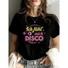Women's Retro Disco Graphic Print T-Shirt - Short Sleeve Crew Neck Casual Top with Stars & Disco Ball Design, Vibrant Colors, Comfortable Fit Shirt