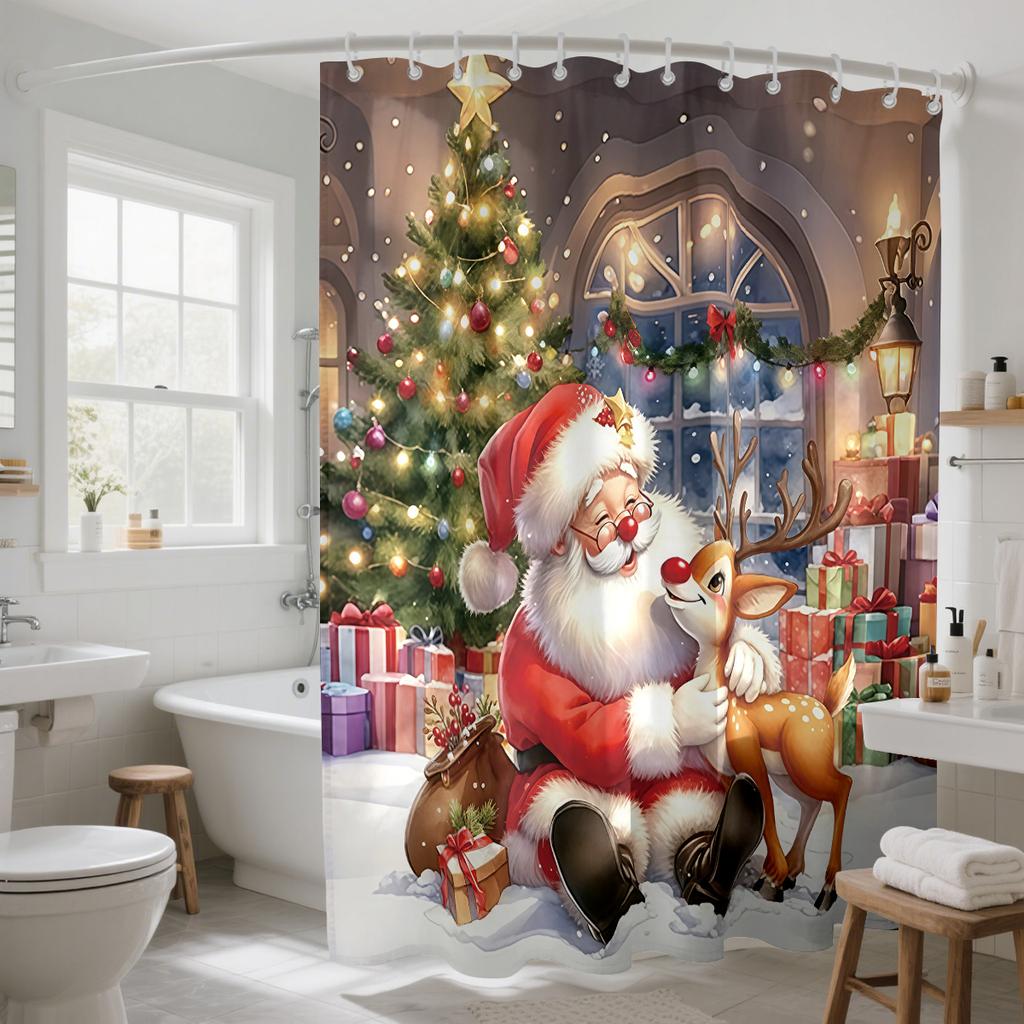 1pc Merry Christmas, Santa Claus print, waterproof shower, privacy curtain with 12 hooks, multiple sizes machine washable