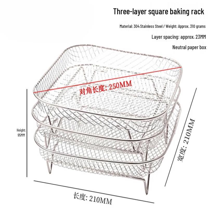 ZISIZ 304 Stainless Steel 3-Tier Square Air Fryer Rack