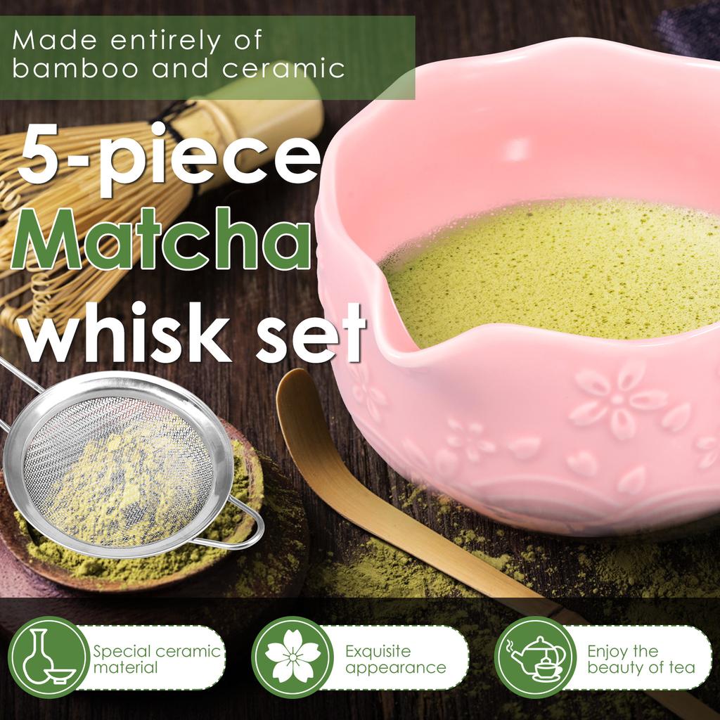 5 Pcs Matcha Making Kit Ceramic Japanese Matcha Bowl Whisk Set Easy to Clean Anti-Rust Matcha Set for Tea Lovers Tea Accessories