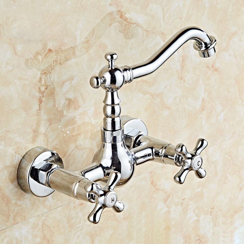 Antique Wall Mounted Basin Faucets Bathroom Black Dual Handles Bathtub Faucet Hot Cold Water Mixer Tap Household
