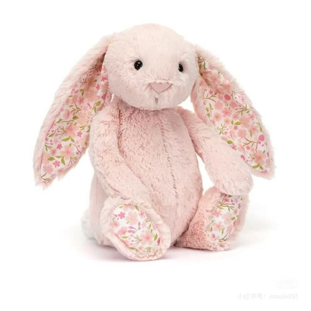 Kreatywna pluszowa zabawka króliczek z kwiatowym wzorem – Różowy króliczek wiśniowy pluszowa zabawka prezent