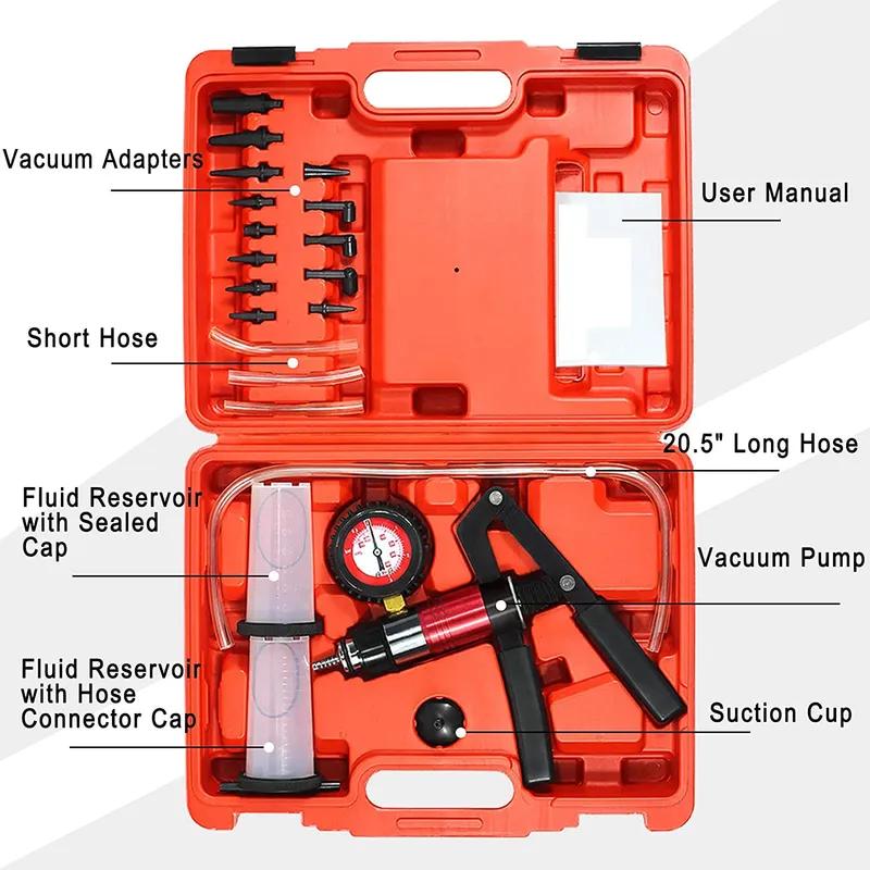 Auto Hand Held Vacuum Pressure Pump Tester Brake Clutch Fluid Bleeder Tool Kit Oil Change Power Steering Fluid Bleeding Tool Kit