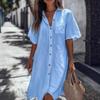 2026 Women's Casual Multi-Color Shirt Dress: European & American Style Short Sleeve Long Cardigan