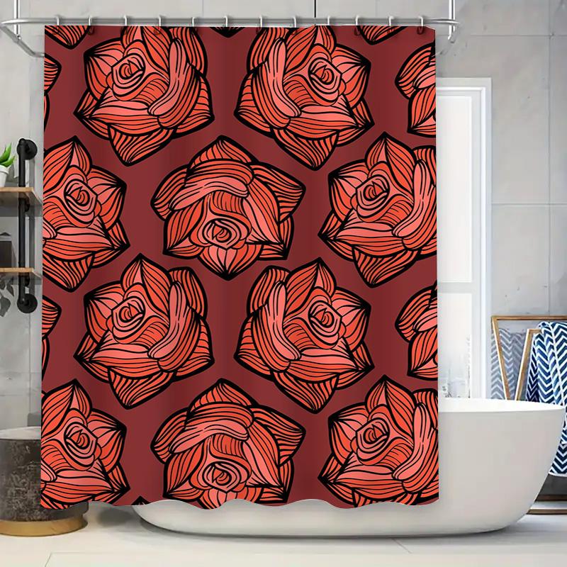 Red Rose Shower Curtain Modern Decorative Bathtub Cover Waterproof Fabric with Hook for Bathroom Ideal Gift Decoration 72x84 Inc