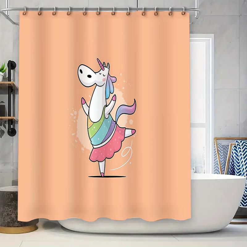 Cute Unicorn Shower Curtain Rainbow Horse Kids Bathroom Decor Set Waterproof Fabric Backdrop