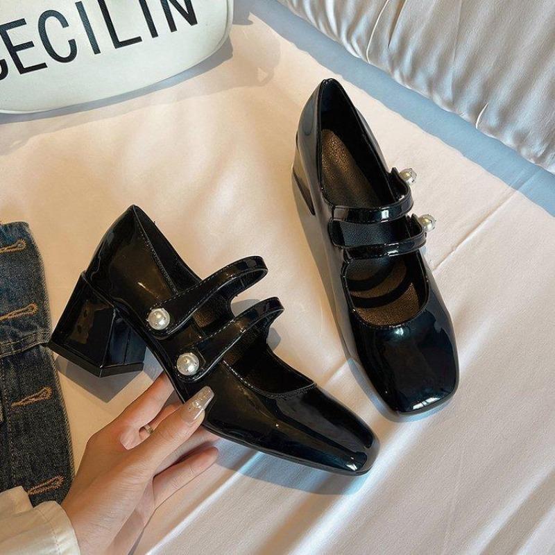 Elegant Women High Heel Pumps Patent Leather High Heels Shoes Chunky Heels Mary Jane Shoes Women Double Ankle Strap Shoes Women
