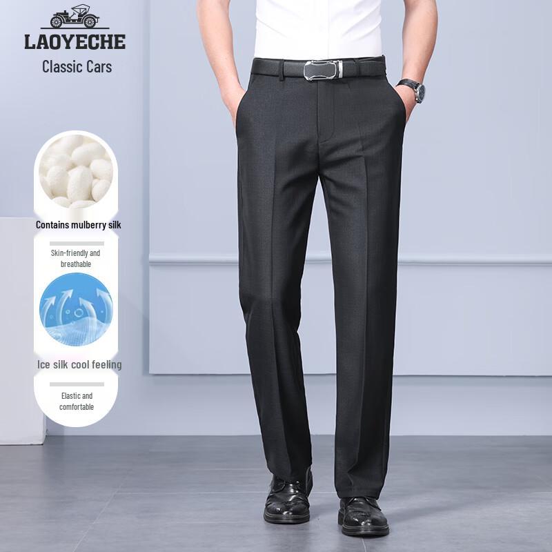 Lao Ye Che Men's Silk Blend Straight-Leg Casual Suit Pants