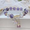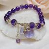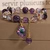 Naturalna Bransoletka z Ametystu Damska Cyrkonia Wisiorek Serce Koraliki Vintage Sznur Biżuteria Prezent dla Siostry Studentki Festiwal
