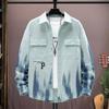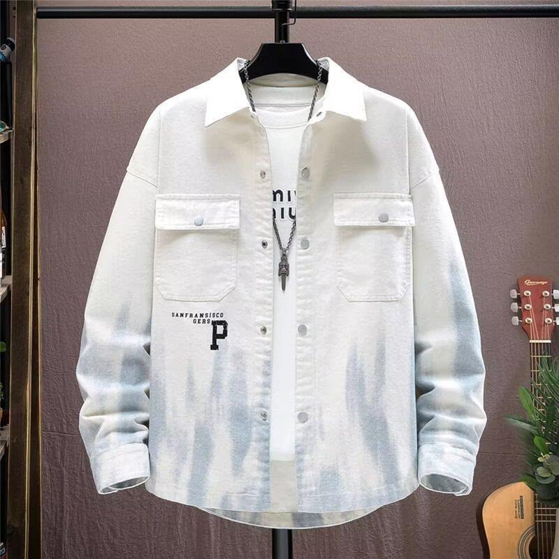 Men's White Gradient Denim Jacket Letter Print Casual Oversized Streetwear Coat