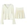 Korean Retro V-Neck Cardigan & High Waist Pleated Skirt Knit Set