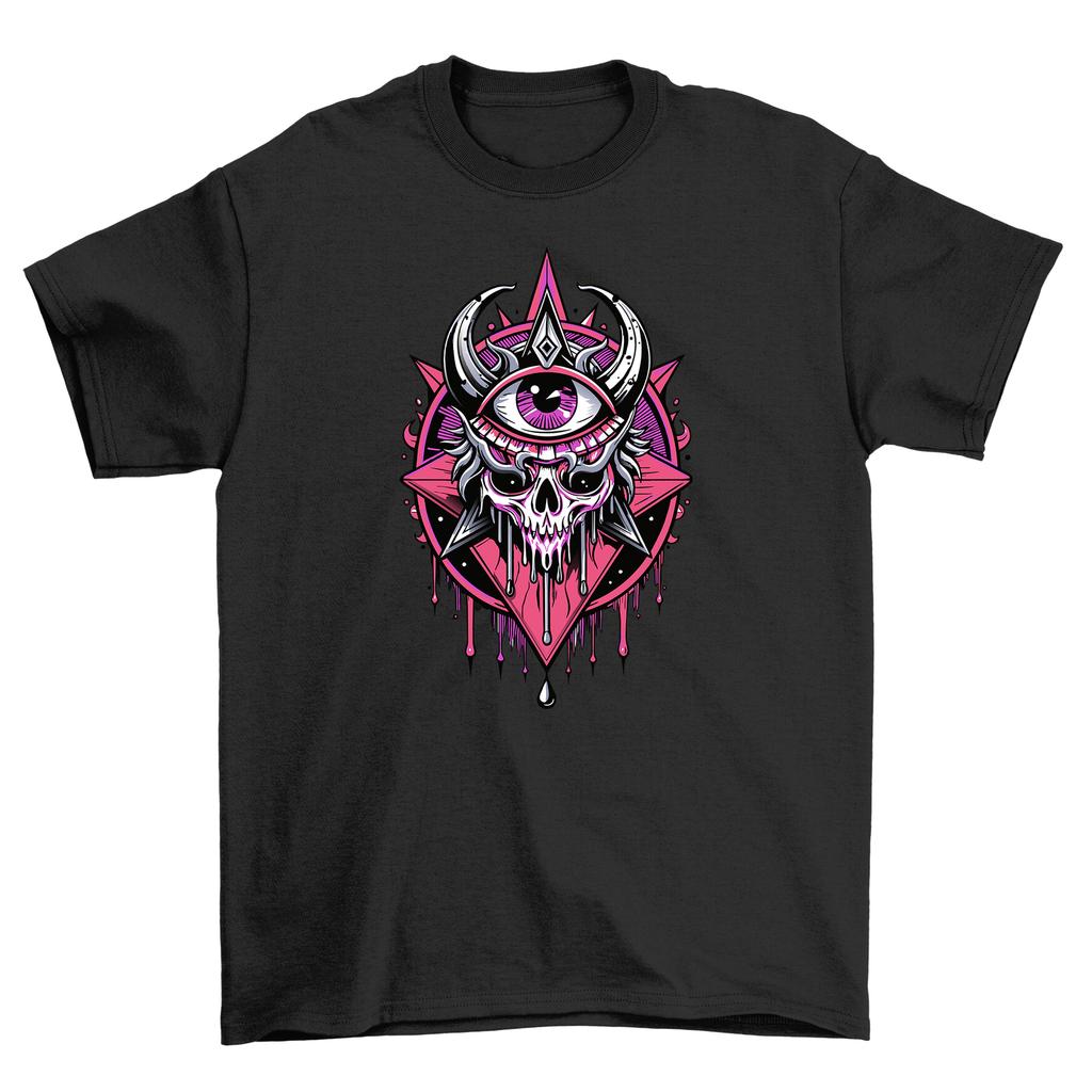 Gothic_16 Pink Skull with Horns T-Shirt Mens Womens Tees Top - Embrace your Inner Dark Side in Style!