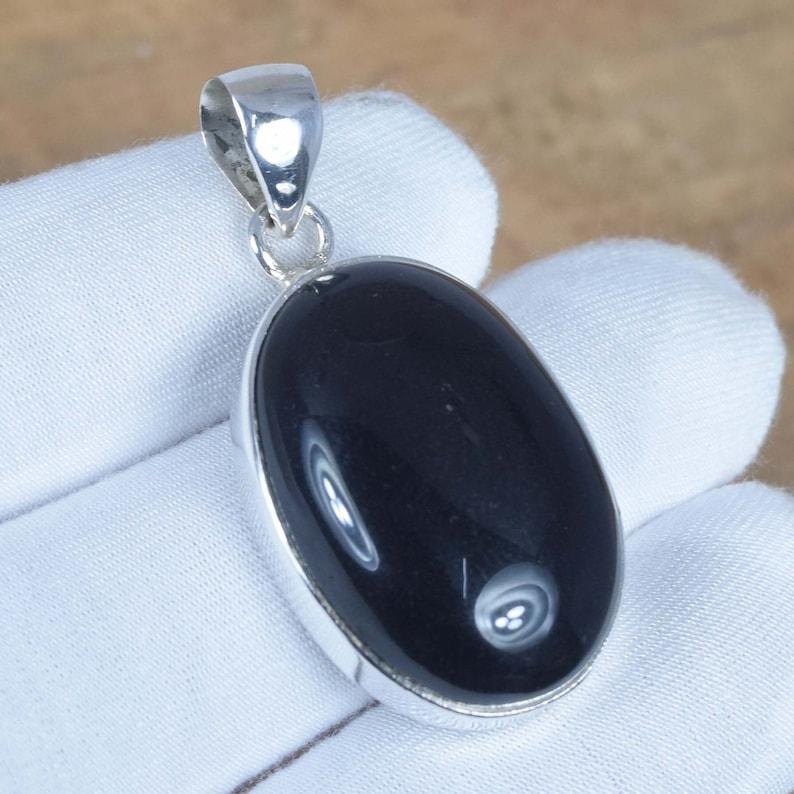 Solid 925 Sterling Silver Black onyx Oval Gemstone Handmade Pendant Unisex Gift Bezel Pendant Jewelry