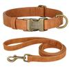 Personalized Dog Collar Leash Set Customized Dogs Collar Walking Lead Rope Leather Pet Collars for Small Medium Large Dogs Pug
