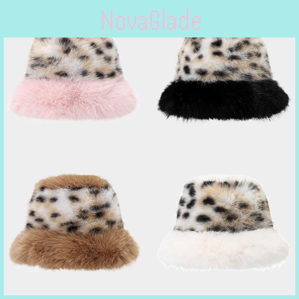 Polyester Furry Leopard Print Fisherman Hat With Wide Brim For Winter Fashion
