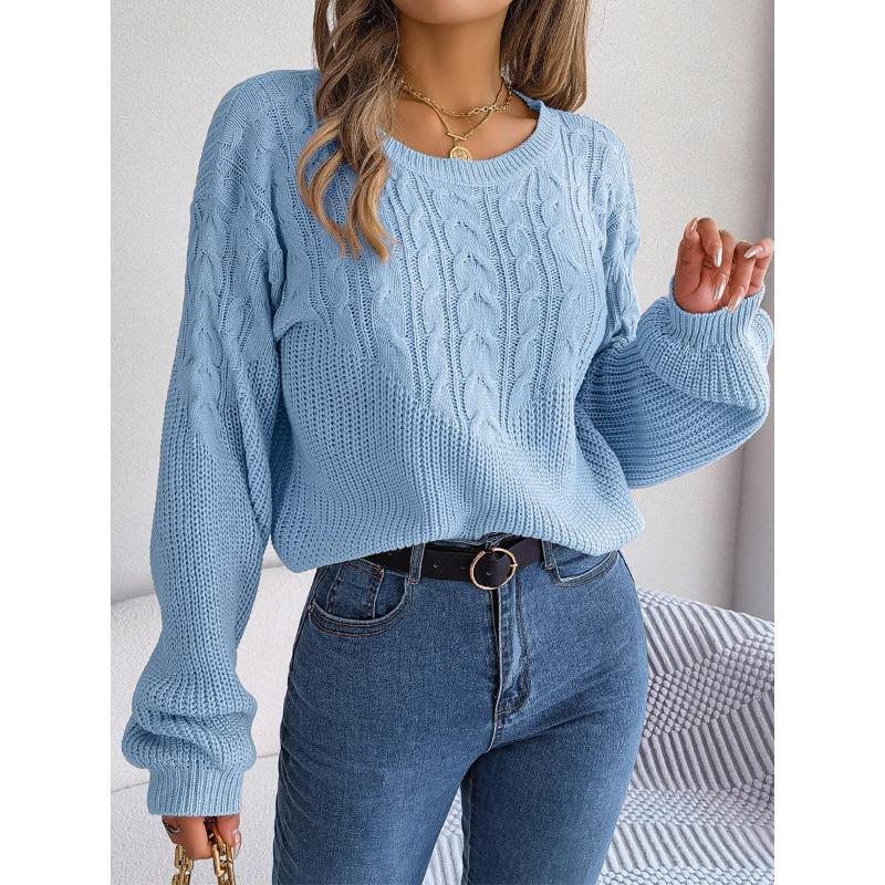 Sweter damski w jednolitym kolorze, patchworkowy, z rękawami typu lampion, pulowerowy top