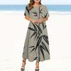 Letnia Elegancka Damska Sukienka z Okrągłym Dekoltem i Krótkim Rękawem z Drukiem Kwiatowym 3D Street Wear Codzienna Luźna Sukienka