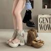 Metalowe Nity Ozdobne Frędzle Zamszowe Sandały Damskie 2026 Lato Gruba Platforma Klinowe Sandały Codzienne Z Paskiem na Pięcie Sandały