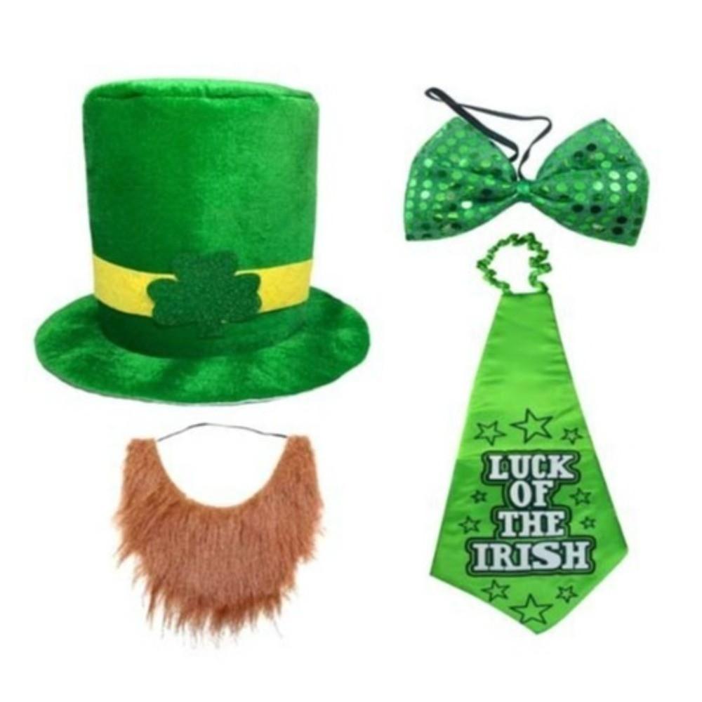 4pcs Set Fake Beard Saint Patrick's Day Top Hat Irish Festival Costume Theme Party Decor