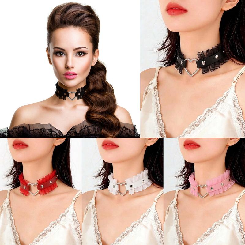 ✅Sweet gothic design: ruffled lace + hollow heart frame