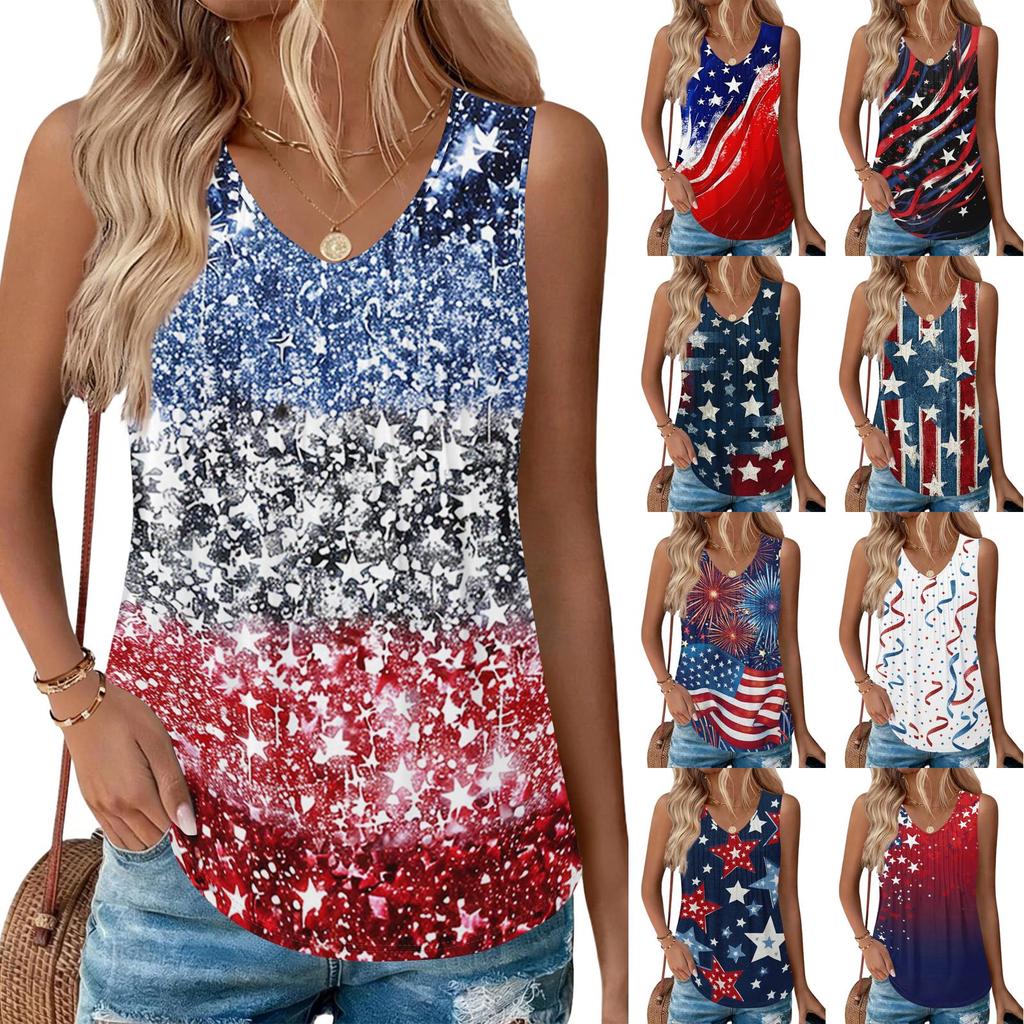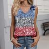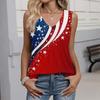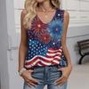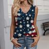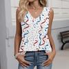 Women's Fashion Casual American Independence Day Flag and Stars Print V-Neck Ruffled Sleeveless T-Shirt Top