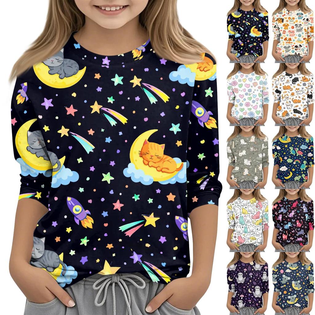 Children's Printed Round Neck Seven Quarter Sleeve Casual T-shirt
