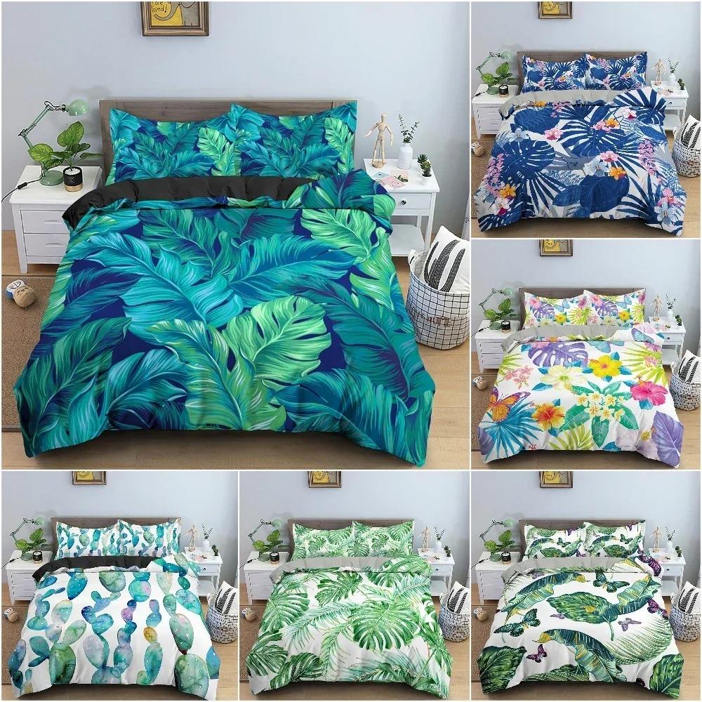 3D Tropical Plant Leaves Bedding Set Luxury Duvet Cover With Pillowcase King Twin Bedroom Decor