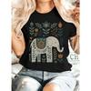 [Soft And Art] Women'S Summer Clothing, Folk Style Elephant Print Round Neck Short Sleeve T-Shirt, Comfortable,