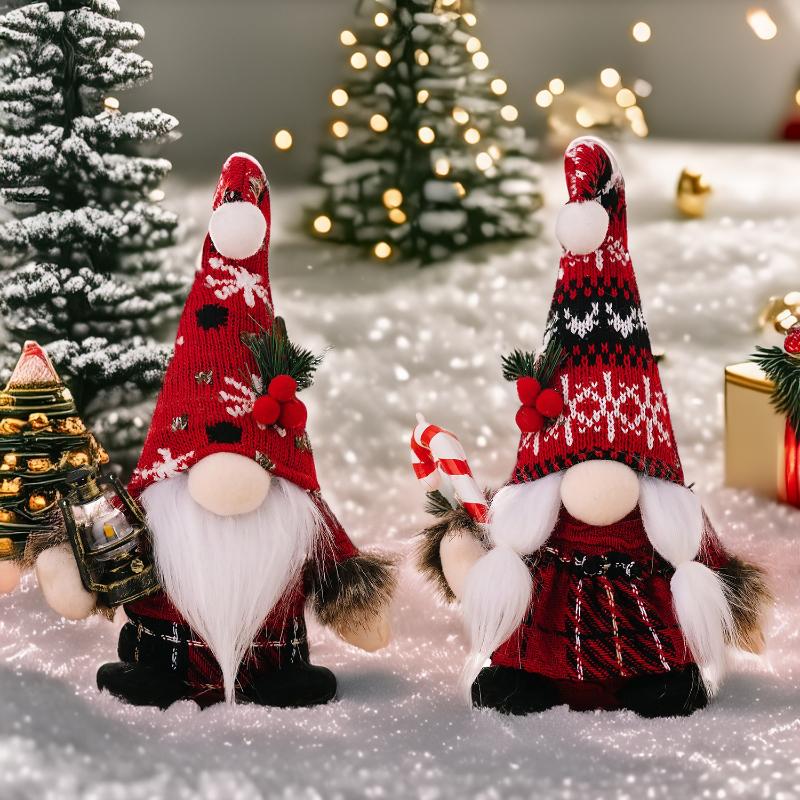 Christmas Gnome Plush Doll Knitted Hat Faceless Dwarf Doll Christmas Ornaments Handheld Crutch Xmas Mall Decorations Kids Gift