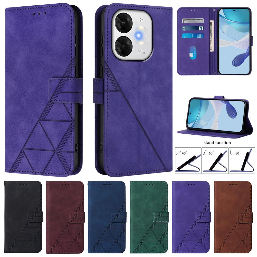 Geometric Leather Wallet Case For ZTE Blade A76 A75 A73 A55 A53 Plus A52 A35 Core V60 V80 Vita Nubia Focus 2 Ultra Calf P9 Pro