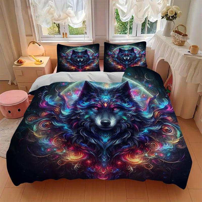 3pcs Psychedelic Journey Wolf Printed Quilt Set - Soft and Comfortable Quilt Cover for Bedroom, Guest Room and Dormitory