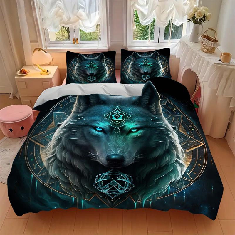 3pcs Enchanted Wolf Bedding Set - 1 Soft Quilt Cover + 2 Pillowcases, Machine Washable - Suitable for All Seasons, Perfect Gift for Friends