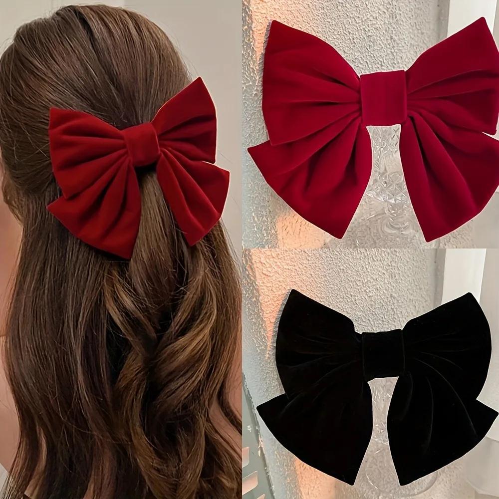 Red Velvet Big Bow Hair Clip with Hairpin, Gentle Girl, Princess, Head, Back of Head, Top Clip, Bangs Clip