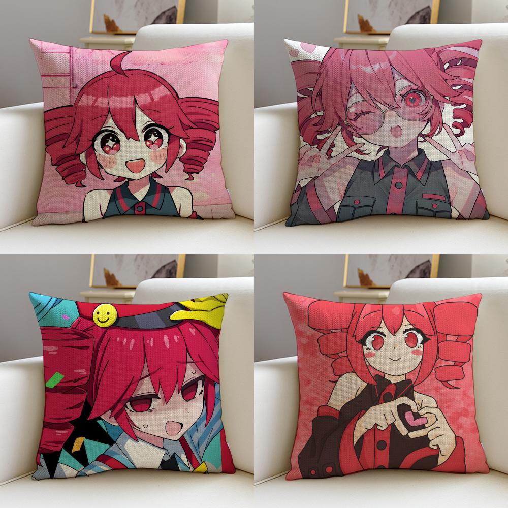Cute KKasane Teto AnimeS Cushion Cover Breathable and skinfriendly linen pillowcase square removable and washable cushion