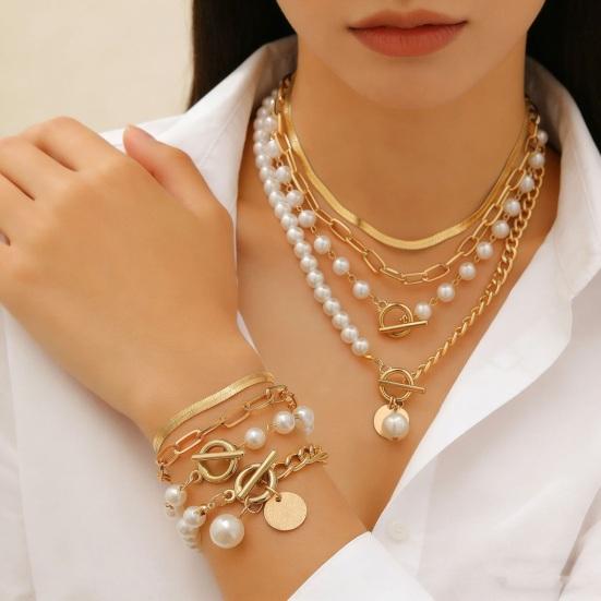 Versatile Multi-Chain Design With Imitation Pearl Accents: This accessory set uniquely blends classic chain styles including snake bone, OT buckle, and Cuban chains, enhanced by warm imitation pearls. The combination creates a balanced look that is both sweet and edgy, making it perfect for diverse occasions such as commuting to work, casual dates, or festive parties. Its adaptable style complements a wide range of outfits effortlessly.