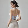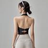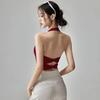 Women's Halter Neck Yoga Tank Top with Chest Pads & Cross Straps - Sexy Fitness Camisole Crop for Pilates