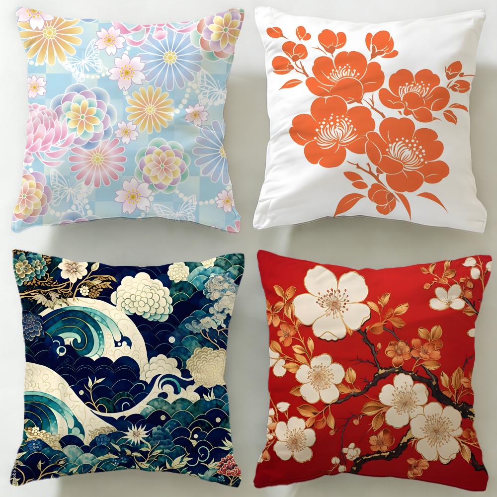 Chinese Traditional Floral Cushion Cover Soft EasyWash Pillow Case Versatile for Couch Bed Travel and Office