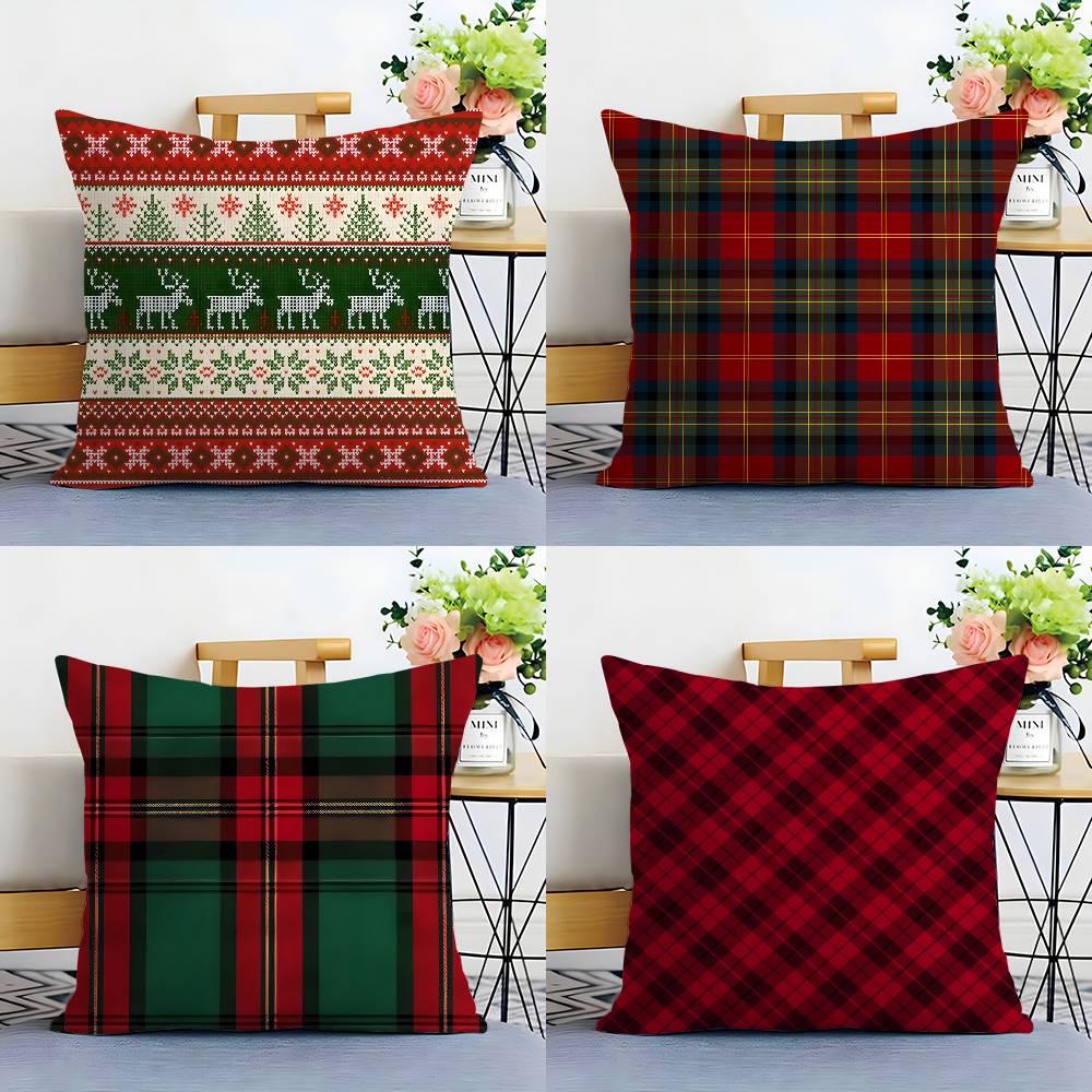 Christmas Plaid Pillow Case Sofa Living Room Bedroom Doublesided Printing Square Cushion Nap Time Pillow Case
