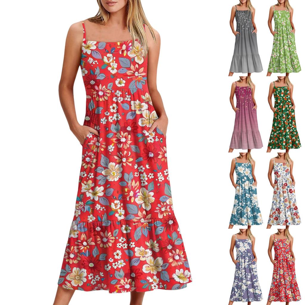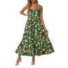 Damska Długa Plażowa Codzienna Elegancka Sukienka Maxi na Cienkich Ramiączkach, Szyta, Subtelna, Zwiewna Sukienka w Stylu Boho