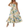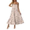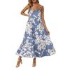 Damska Długa Plażowa Codzienna Elegancka Sukienka Maxi na Cienkich Ramiączkach, Szyta, Subtelna, Zwiewna Sukienka w Stylu Boho
