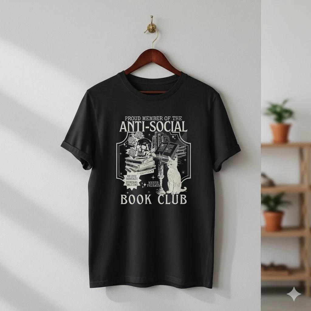 Anti-Social Book Club Graphic T-Shirt Black Unisex Reading Lover Tee - S138