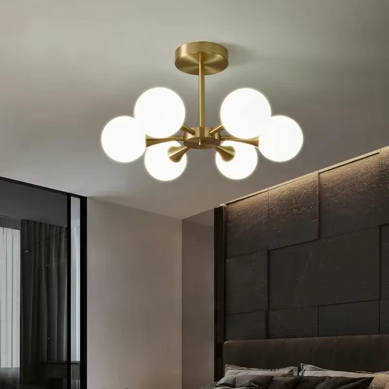 Minimalist Luxury Copper LED Ceiling Chandelier Nordic White Glass Ball Ceiling Lamps Living Dining Room Bedroom Light Fixture