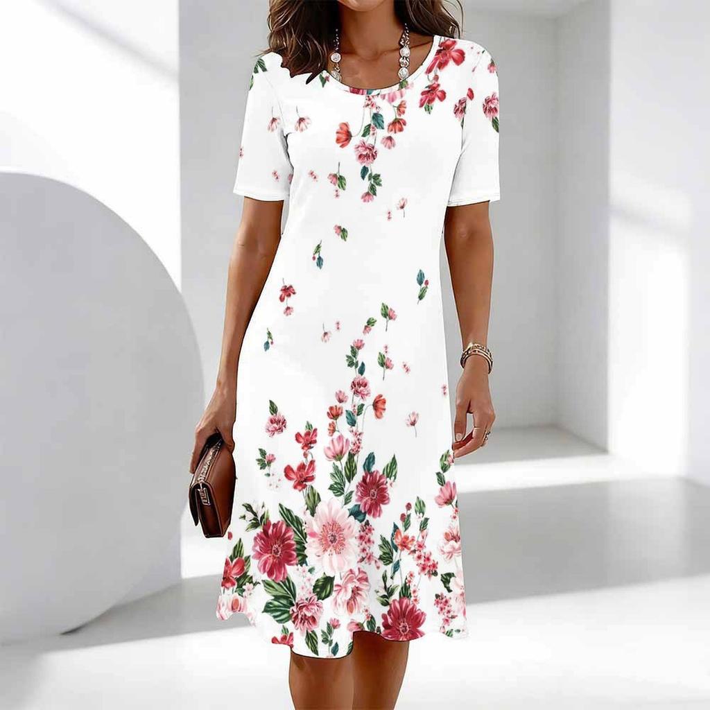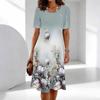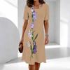 Damskie Modne Eleganckie Piękne Letnie Wiosenne Sukienki Codzienne z Nadrukiem Kwiatowym Krótkim Rękawem Okrągłym Dekoltem
