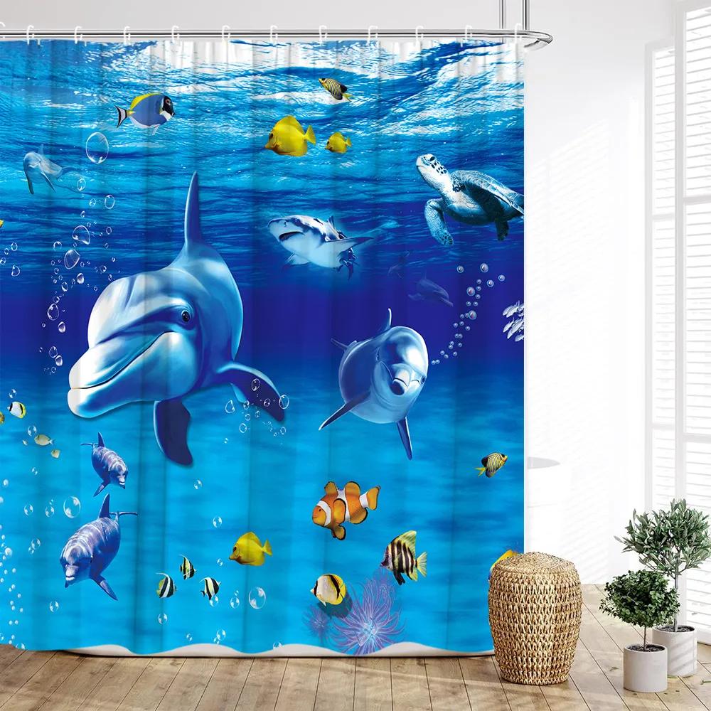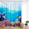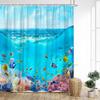 Ocean Animal Shower Curtain, Underwater Whale Coral Tropical Fish Wave Fish Blue Kids Boys Print Bathroom Decoration